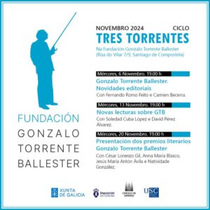 La Fundación Gonzalo Torrente Ballester participa en esta exposición en el Centro Cultural Torrente Ballester de Ferrol que, tras su paso por la Biblioteca Nacional de España, recuerda al escritor en el vigésimo quinto aniversario de su fallecimiento y que transita por su recorrido vital para acercarnos a su obra. La muestra recorre los paisajes vitales del autor y revela aspectos íntimos y personales a través de manuscritos, primeras ediciones de sus obras, traducciones, ejemplares de su biblioteca personal, objetos, fotografías…