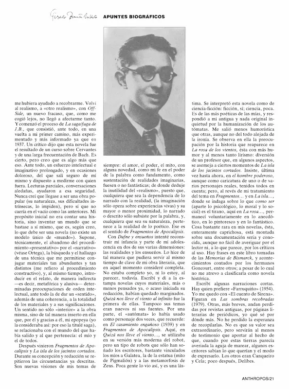 Gonzalo Torrente Ballester, «Nota autobiográfica», en Anthropos, nº 66-67 (1986), pp. 19-21
